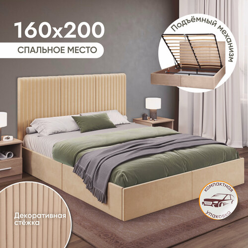 Двуспальная кровать 160х200 см Сицилия с подъемным механизмом для дома и спальни, вельвет, Ами Мебель