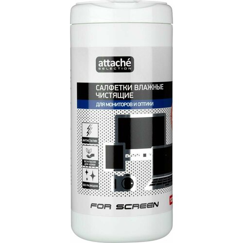 Салфетки влажные Attache Selection Professional для экранов (100 штук в тубе)