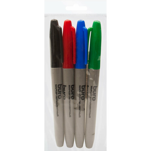Набор маркеров перманентных Buro Base пулевидный пишущий наконечник 2.5мм 4 цвета пакет с европодвесом