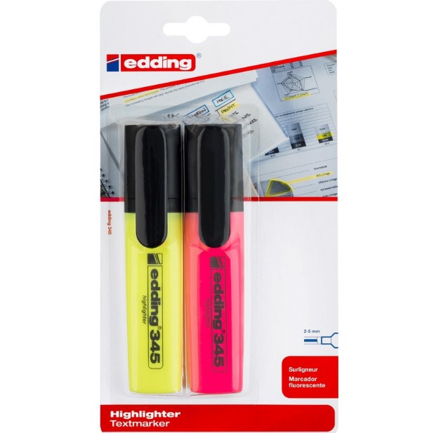 Набор маркеров выделителей текста EDDING 345 желт, роз 2-5 мм, 2 шт/блистер, 1183285 100029865418