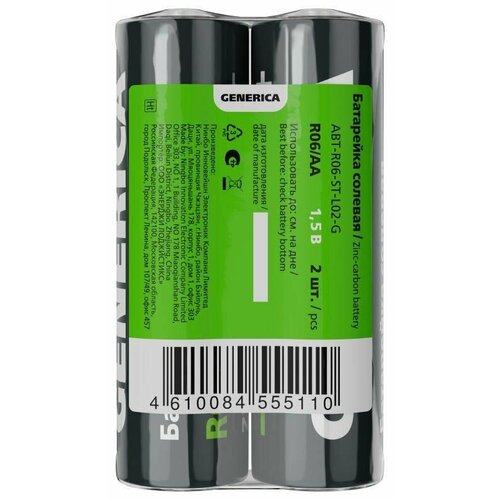 Элемент питания солевой AA/R6 пленка (уп.2шт) GENERICA ABT-R06-ST-L02-G