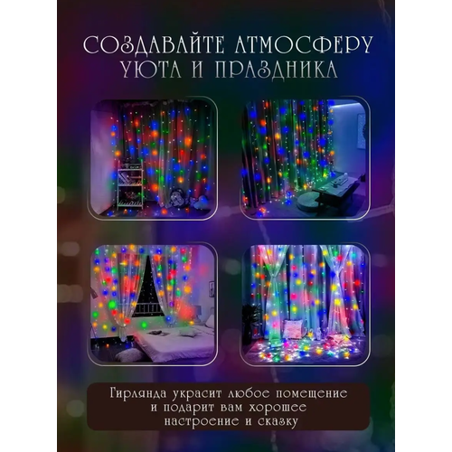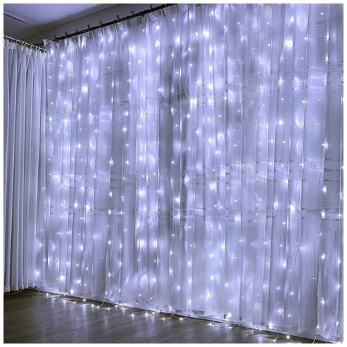 Гирлянда электрическая светодиодная 3х3 метра, Белая / Гирлянда штора занавес новогодняя разноцветный