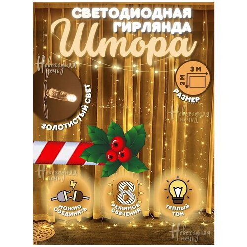 Гирлянда электрическая светодиодная 3х2 м. Желтая / Гирлянда штора занавес новогодняя