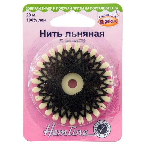 Нить льняная на звездочке HEMLINE, 20 м 20 м* чёрный * HEMLINE 1001.04