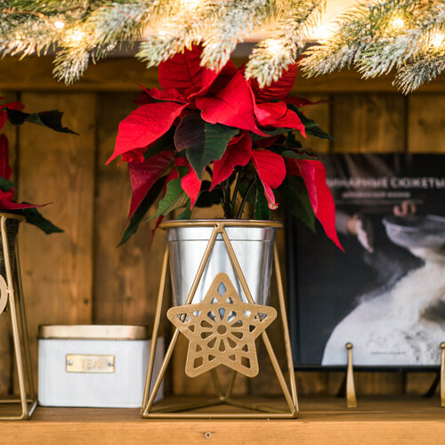 Новогодняя подставка для цветов на подоконник из металла, цвет золото, 660-006G диаметр 12 см