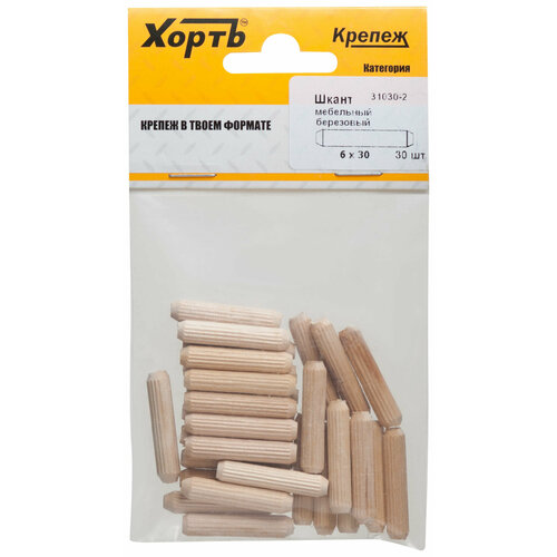Шкант мебельный 6 х 30 березовый 100 шт Фасовка