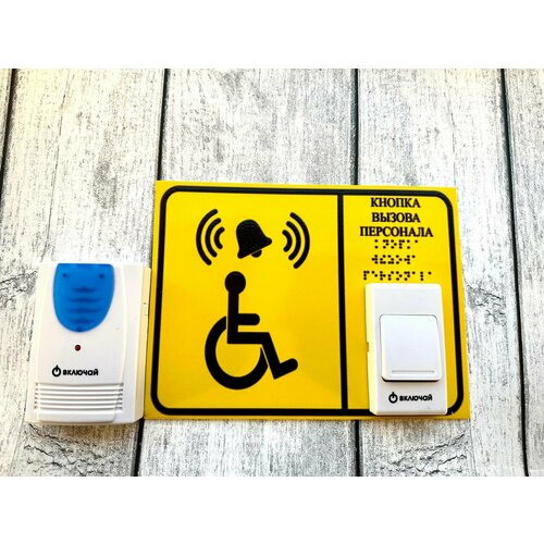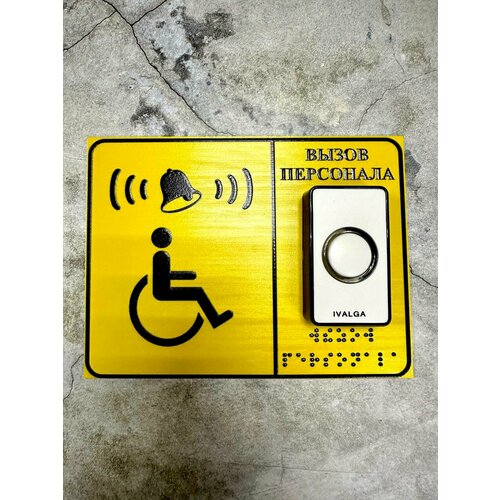 Тактильная табличка со шрифтом Брайля "Кнопка вызова персонала" Звонок + кнопка+приемник 15х20см