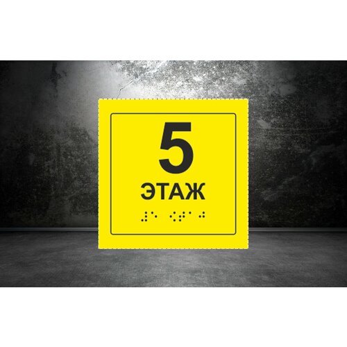 Тактильная табличка со шрифтом Брайля " Номер этажа 5" 150х150мм для инвалидов "Доступная среда" по ГОСТ 52131-2019 ПВХ 3мм