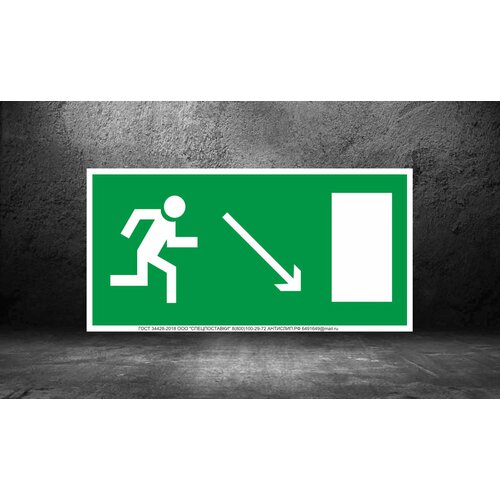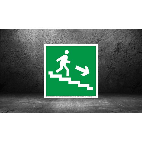 Эвакуационные знаки E07 Направление к эвакуационному выходу направо вниз Размер 200*100мм