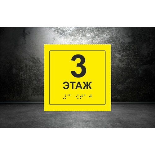 Тактильная табличка со шрифтом Брайля " Номер этажа 3" 150х150мм для инвалидов "Доступная среда" по ГОСТ 52131-2019 ПВХ 3мм
