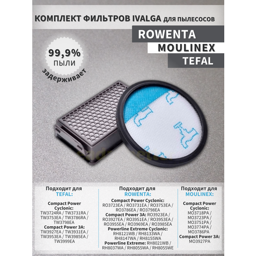 Комплект фильтров Ivalga для Rowenta COMPACT POWER XXL ZR780000 RO4811EA RO4871EA RO48