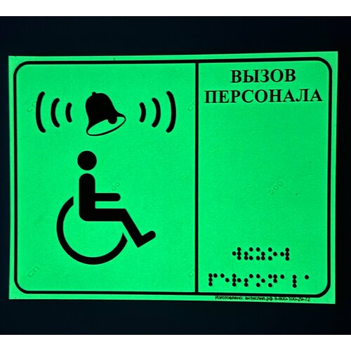 Фотолюминесцентная тактильная табличка со шрифтом Брайля "Кнопка вызова персонала" 150х200мм для инвалидов ПВХ 3мм без звонка И кнопки!