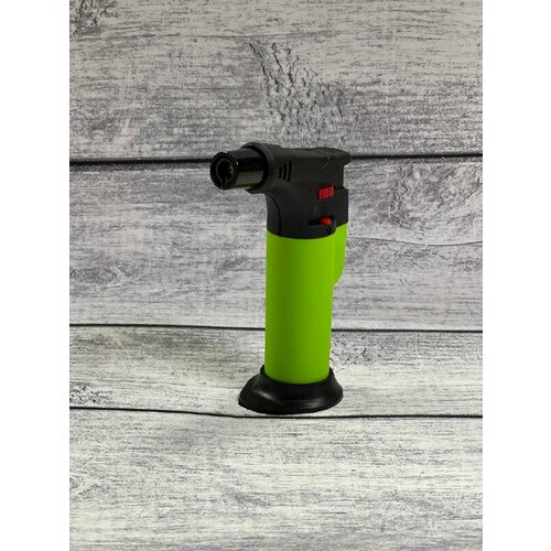 Мини газовая турбо горелка, зажигалка туристическая с пьезоподжигом - зеленая.