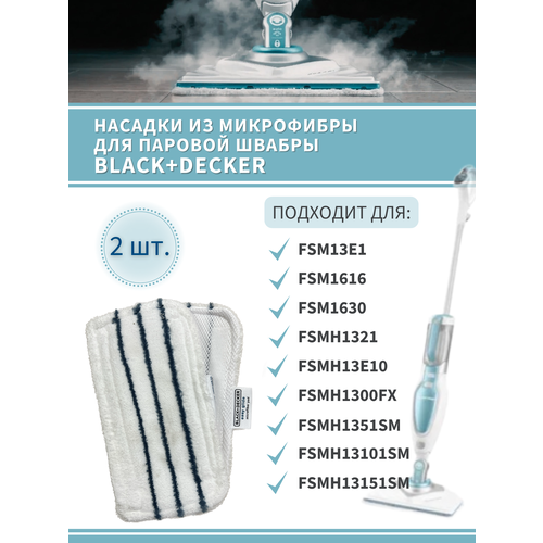 Набор из 2-х насадок для паровой швабры Black+Decker / Накладки сменные для паровой щетки FSM13E1, FSMH13E10, Kitfort КТ-1015