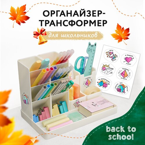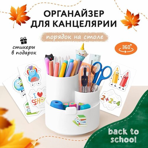 Белый органайзер для канцелярии на стол Подставка для ручек, карандашей, мелочей / Karpee Home