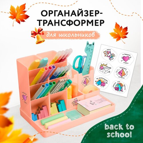 Розовый органайзер для канцелярии на стол Подставка для ручек, карандашей, мелочей / Karpee Home