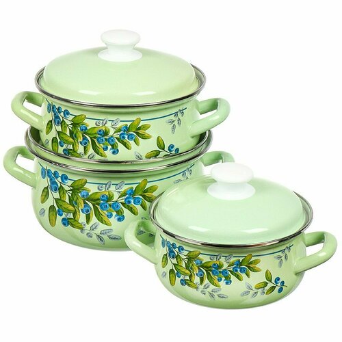 Набор посуды эмалированная сталь, 6 предметов, Керченский металлургический завод, Черника-1, салатовый
