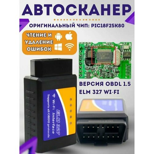 Сканер для диагностики автомобилей ELM327 v1.5 OBDII PIC18F25K80 ; адаптер тестер Bluetooth WIFI ; Автосканер , ОБД2 для ваз Bluetooth ELM327