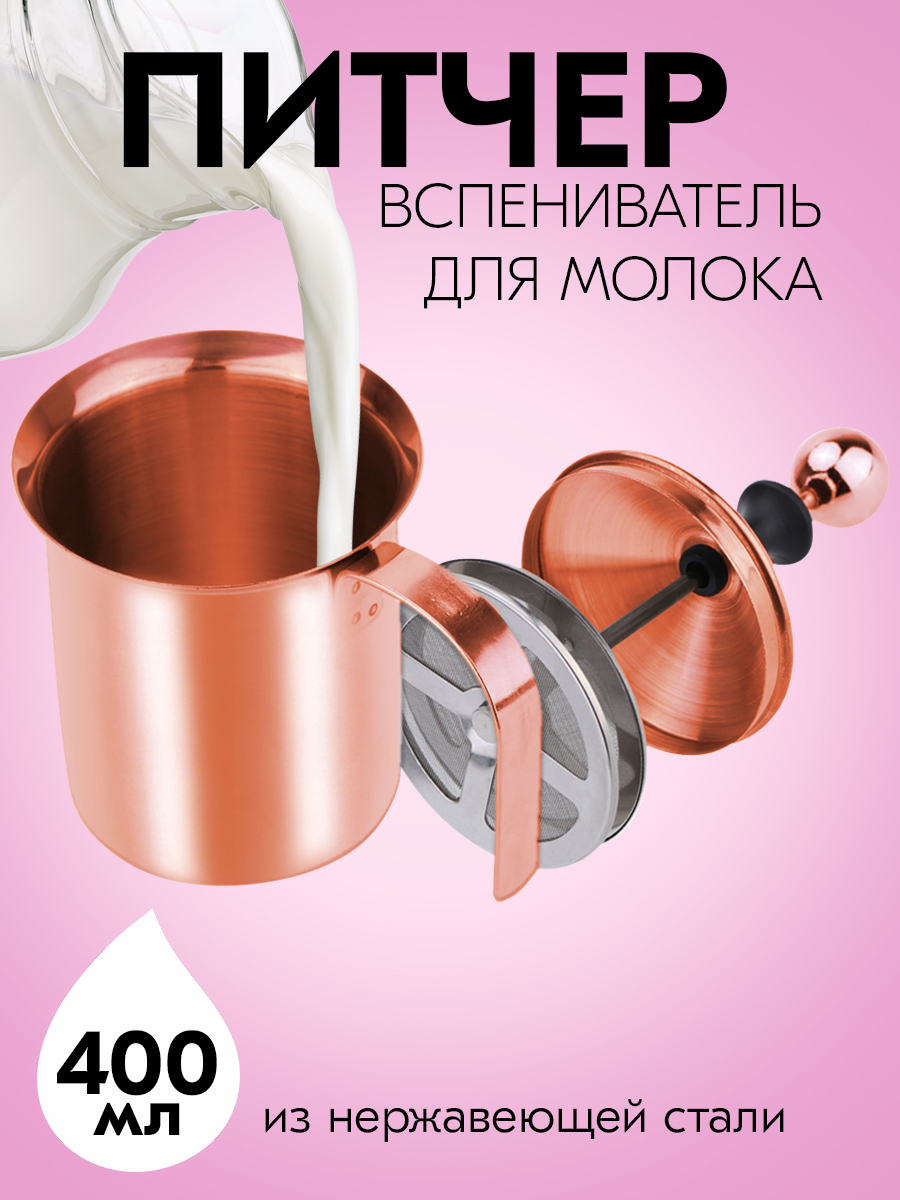 Вспениватель молока, капучинатор из нержавеющей стали, цвет бронзовый, 400 мл, 17х9х9 см Kitchen Angel KA-LATT-06