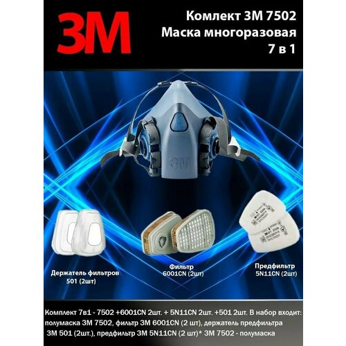Средство защиты. 7502 3M Маска в сборе (720P) (7502- 1 шт, 6001- 2 шт, 501- 2 шт, 5N11CN- 2 шт.)