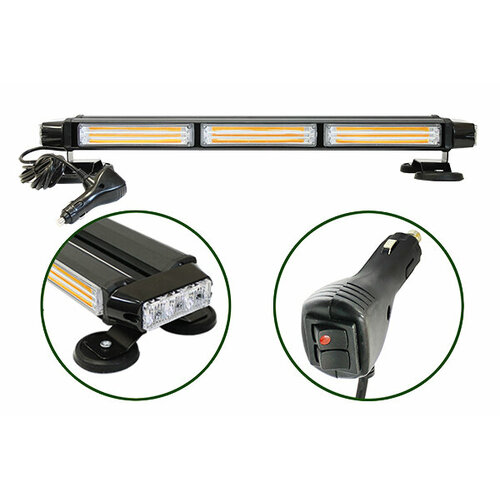 Маяк проблесковый светодиодный. 10-30 V (4-х сторонняя панель, 7 режимов, 39W, COB/LED, L-535мм, от прикуривателя)