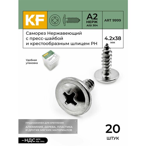 Саморез Нержавеющий 4,2х38 мм ART 9999 А2 самонарезающий c прессшайбой крестообразный шлиц PH 20 шт.