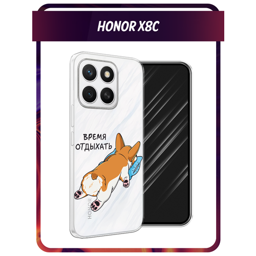 Чехол на Honor X8c / Хонор X8c с принтом Корги отдыхает, прозрачный