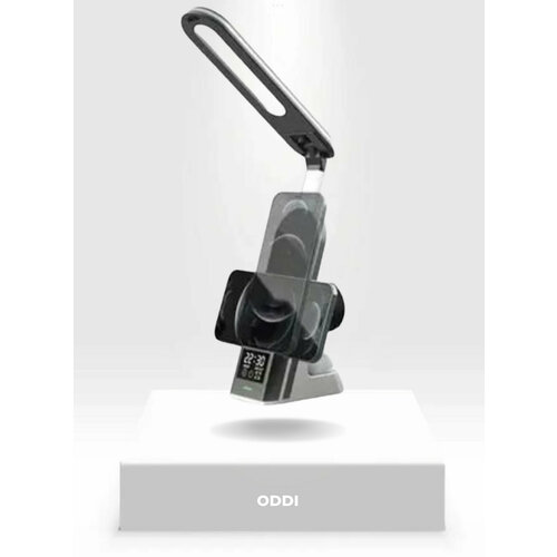 Настольная лампа-будильник с беспроводной зарядкой и часами