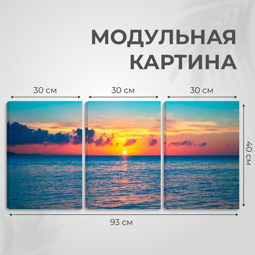 Модульная картина для интерьера триптих на холсте постер на подрамнике, "Берег океана", размер 93х40 см (3 модуля по 30х40 см), Им-По-068
