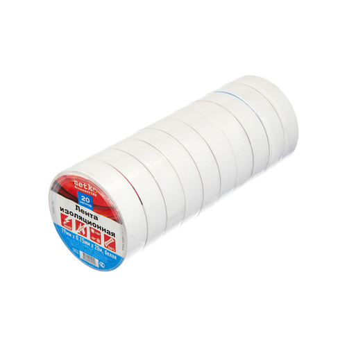 Изолента (лента изоляционная) 19мм х 20м, белая, Netko, блистер из 10 шт
