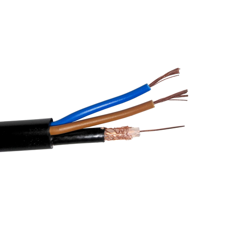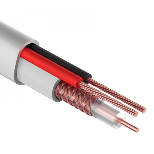 Кабель коаксиальный КВК-В, (медный проводник, оплетка 80 нитей CCA) с кабелем питания 2x0.5мм2 (медный), 60 метров