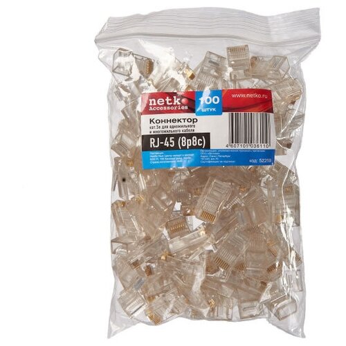 Коннектор RJ-45 (8p8c), категория 5е, в упаковке 100 шт