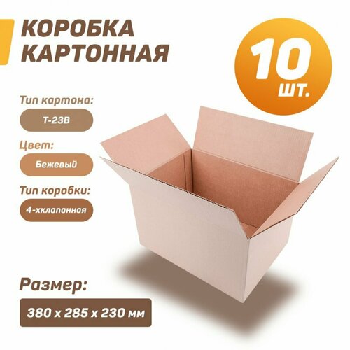 Коробка картонная самосборная (гофрокороб) 380x285x230 мм (Т-23В) для посылок, хранения, Кол-во: 10 шт