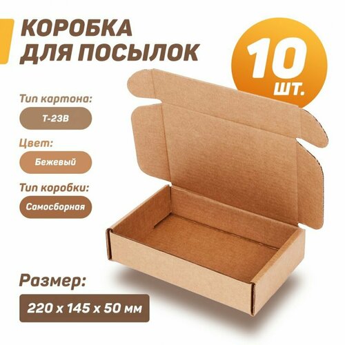 Коробка картонная самосборная (гофрокороб) 220х145х50 мм (Т-23В) для посылок, Кол-во: 10 шт.