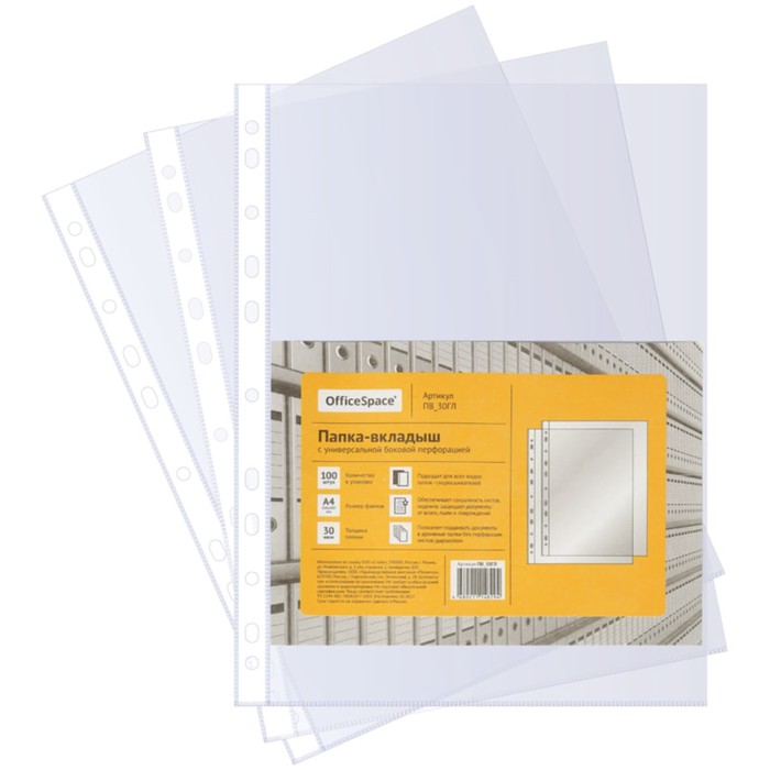 Файл-вкладыш OfficeSpace А4, 30 мкм, глянцевый, вертикальный, 100 шт (54308) 100059381137