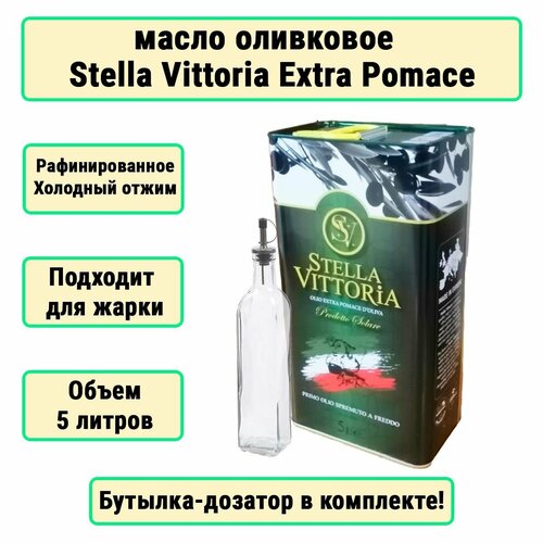 Комплект масло оливковое рафинированное Extra Pomace Stella Vittoria Высший Сорт , 5 л с бутылкой- дозатором для оливкового масла