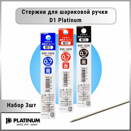 Стержень для шариковой ручки Platinum BSP-100S D1-0,7 мм, набор 3шт