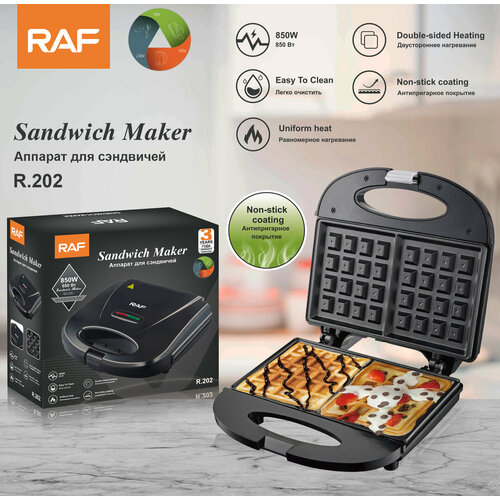 Вафельница, электрическая вафельница, электровафельница, с антипригарным покрытием, RAF, чёрная