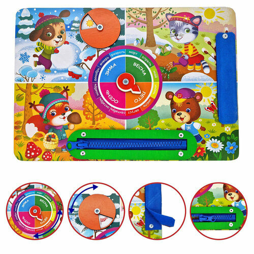 Бизиборд Арбо деревянный "Времена года" 20х29х1 см, подвижные элементы, застежка молния, липучка (БП-00000353)