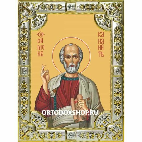 Икона Симон Кананит апостол серебро 18 х 24 со стразами, арт вк-2407
