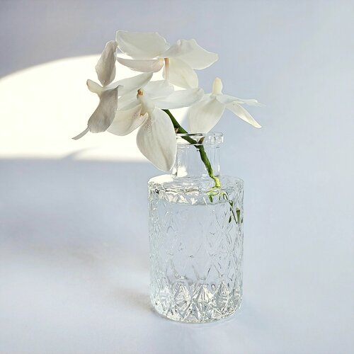 Ваза для цветов стекло прозрачная, бутылек, флакон, рельефная, для декора, маленькая, настольная