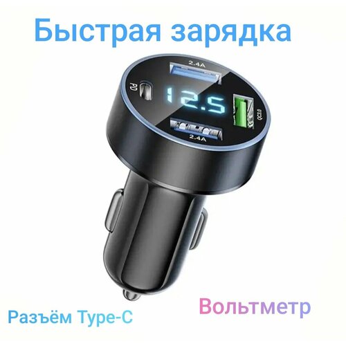 Автомобильное зарядное устройство с вольтметром / 3 USB порта + Type-C / , быстрая автомобильная зарядка для телефона 12-24 QC3.0 12-24 вольт