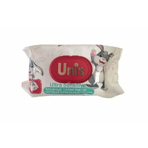 Влажные салфетки ТМ Unis Антибак. для детей без запаха (клапан) (120шт х уп), 4уп.
