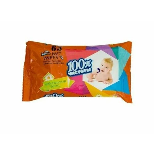 Влажные салфетки ТМ 100% Чистоты для детей с экстрактом Ромашки (63шт х уп)