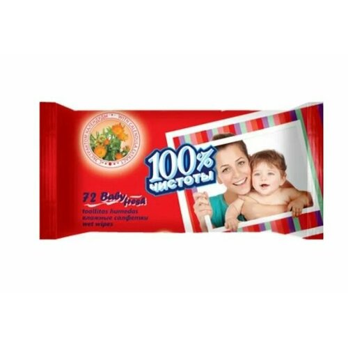 Влажные салфетки ТМ 100% Чистоты для детей с экстрактом Календулы (72шт х уп)