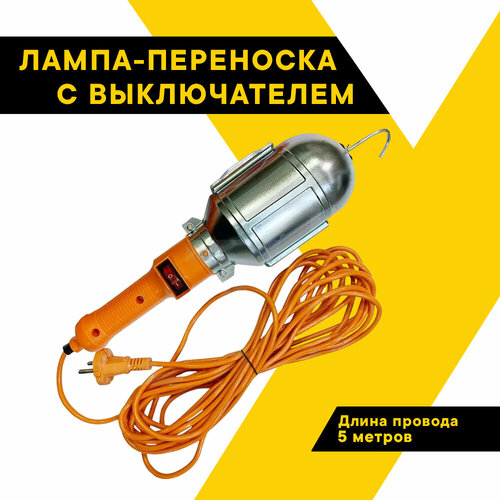Светильник переноска, TOP AUTO, с удлинителем и выключателем, провод 5 м, 220В/60Вт, LP-5M