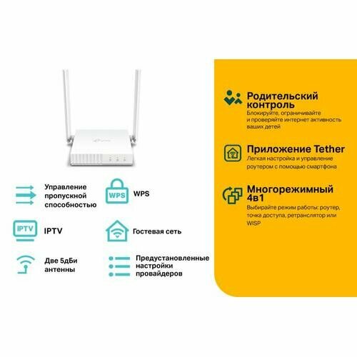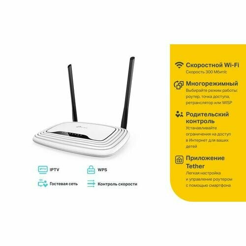 Маршрутизатор TP-LINK Wireless N300 Router (4UTP 100Mbps, 1WAN, 802.11b/g/n, 300Mbps, 2x5dBi)