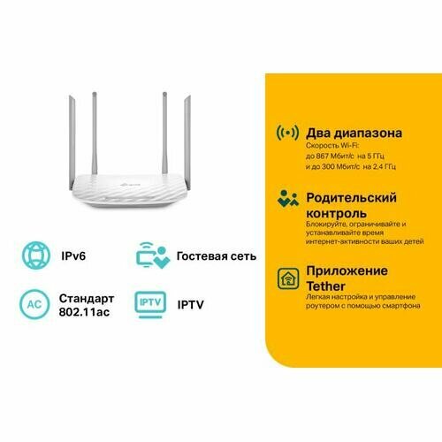 Маршрутизатор TP-LINK Wireless Router (4UTP 100Mbps, 1WAN, 802.11b/g/n/ac, 867Mbps)