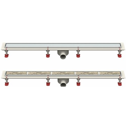 Трап линейный 70см с горизонтальным выходом с рамкой решетка С (2 в 1) под плитку из нержавеющей стали