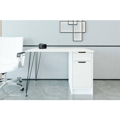 Письменный стол с четырьмя ящиками Kraft белый - дуб бомонт натуральный